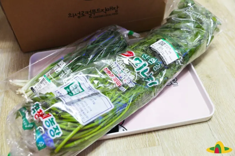 깐 쪽파와 미나리도 들어있었는데요. 무농약 친환경 밭미나리가 엄청 신선하고, 포장도 이중으로 제대로 되어있었어요. 향긋한 미나리도 피를 맑게 해주는 대표적인 웰빙 나물입니다. 폐렴, 고혈압 등에 효능이 있다고 해요.