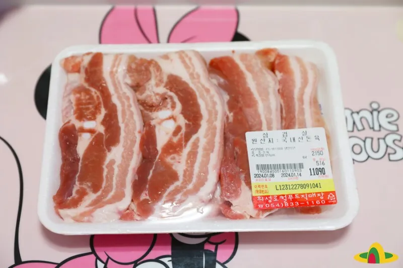 의성로컬푸드직매장에서 배송 온 삼겹살 500g입니다. 삼겹살은 너무 맛있지만, 기름기가 많은 고기라서 보완해 줄 채소를 많이 섭취하는 게 좋아요.