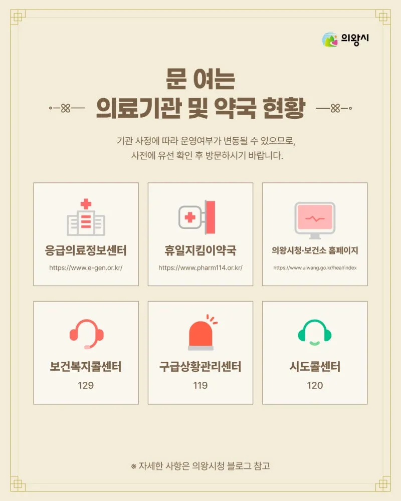 연휴 기간 운영하는 병원·약국 정보는 아래 채널을 통해 확인하실 수 있습니다
