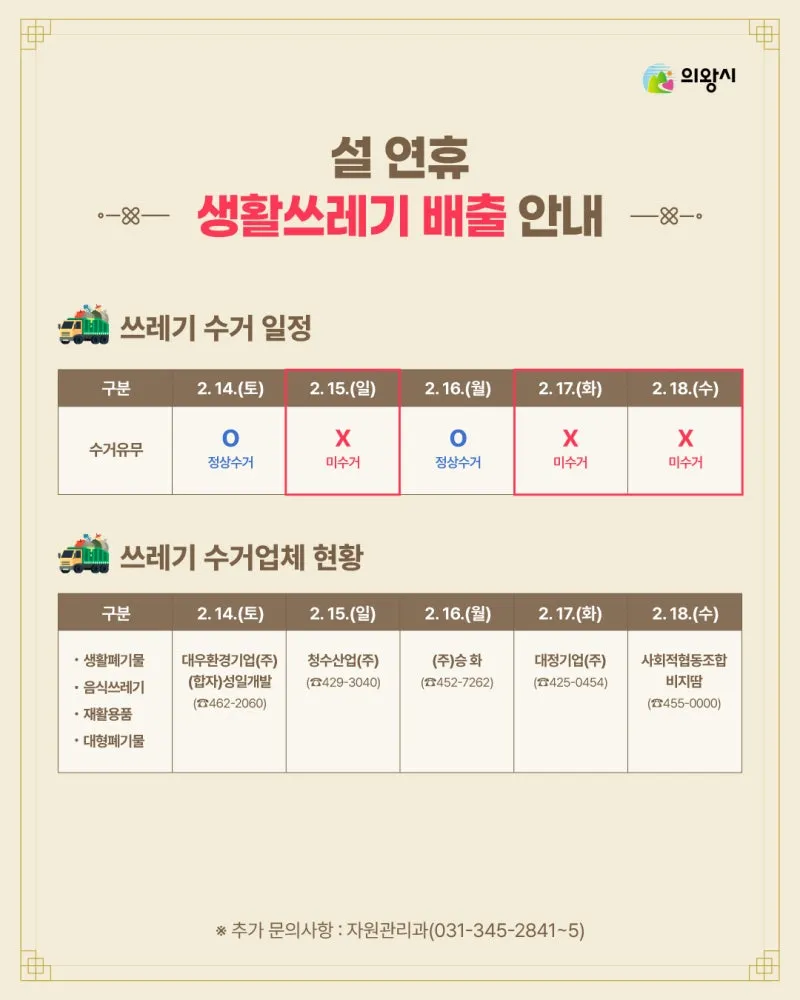 🗑️ 설 연휴 생활쓰레기 배출 안내