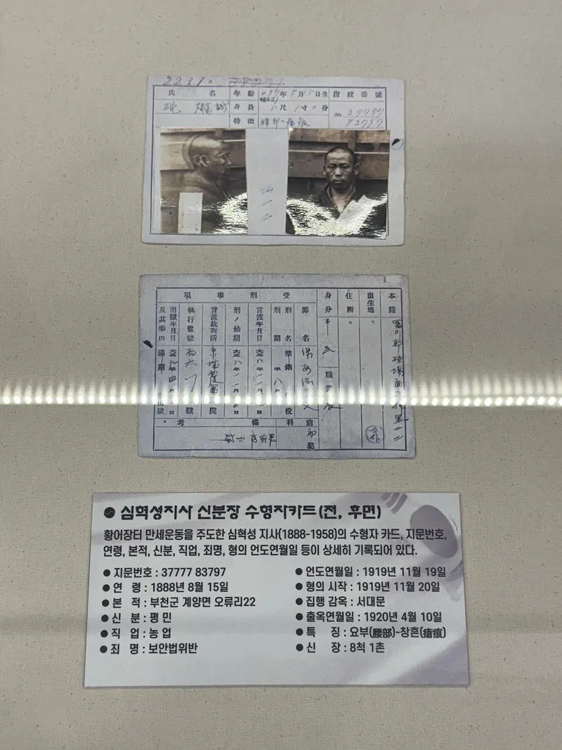 수형자 카드, 만세운동 모형 등이 전시되어 있어