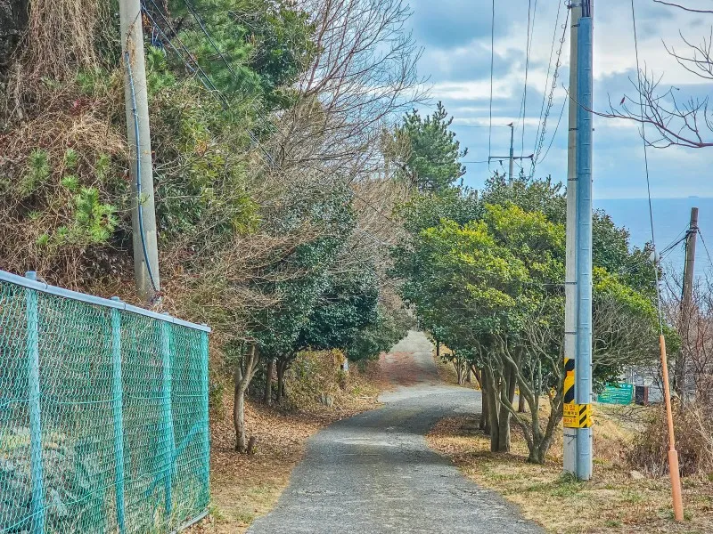 와현고개 버스정류장에서 왼쪽으로 가시면, 서이말등대로 가는 길이 있어요.