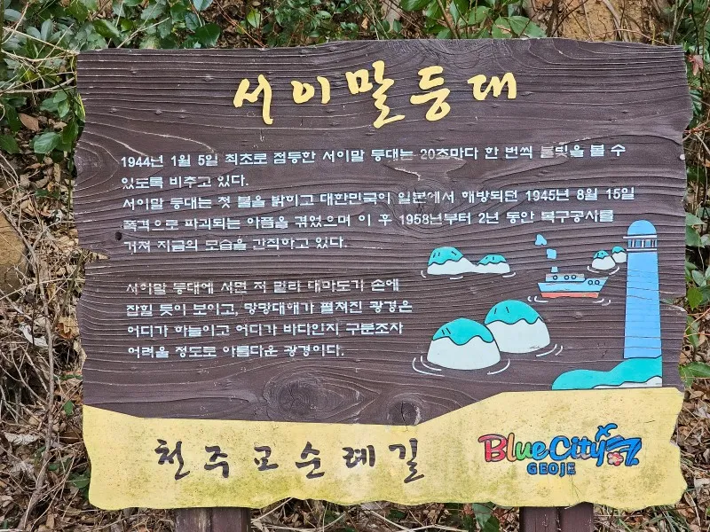 예전 차태현배우,송혜교배우가 주인공으로 나왔다는 영화 파랑대문을 이 곳 서이말등대에서 촬영을 했다고 합니다. 하지만 안내표지판은 존재하지 않네요.