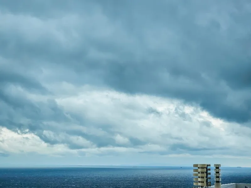 희미하지만 오른쪽 구름 아래에 아리아케 산이 있습니다.