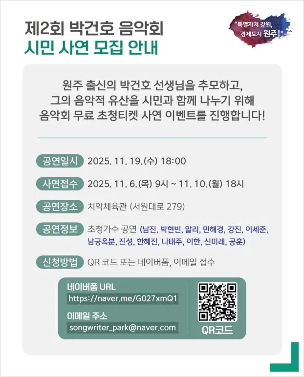 '제2회 박건호 음악회' 시민 사연을 모집합니다.