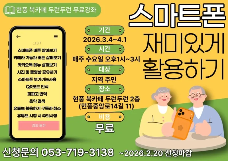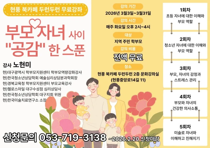 현풍 북카페에서 두런두런 문화강좌 모집 :: 무료 강의✨
