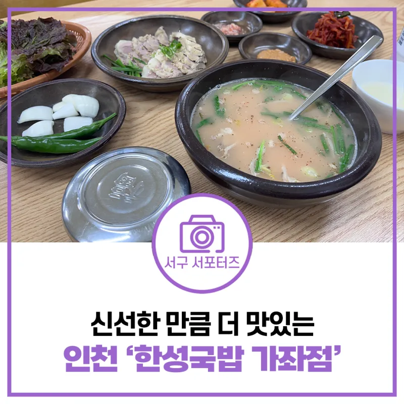 여러분도 쌀쌀한 요즘 국밥이 당긴다면 서구청이 인정한 맛집, '한성국밥 가좌점'에서 든든한 한 끼 식사해 보시는 건 어떠세요? 그럼 서동이는 다음에도 새로운 인천 서구 맛집 소개와 함께 돌아올게요~ 기대해 주세요!