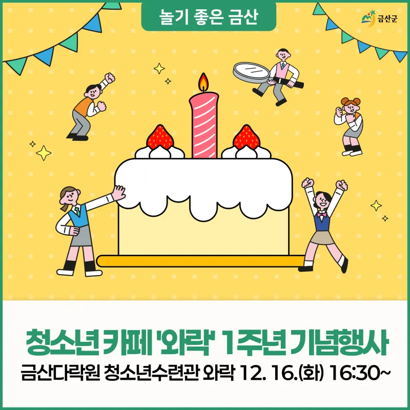 금산다락원 청소년수련관 청소년 카페 '와락' 1주년 기념 행사 안내