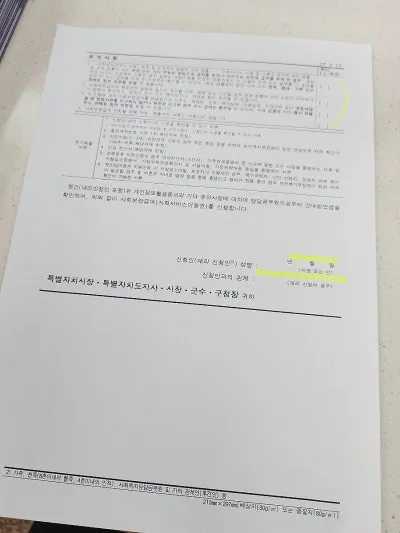 바우처 사용을 위한 카드 발급 신청서. (신규 신청자만 필요). |