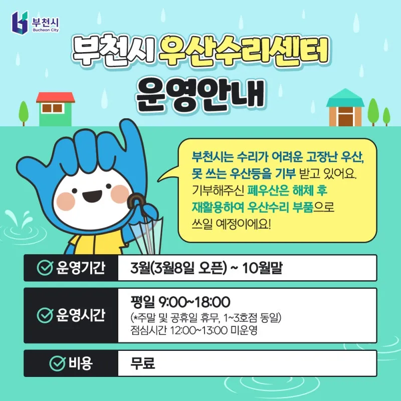 부천시 우산수리센터 안내 : 우산 필요핸썹?☔ 무료 대여! 무료 수리!