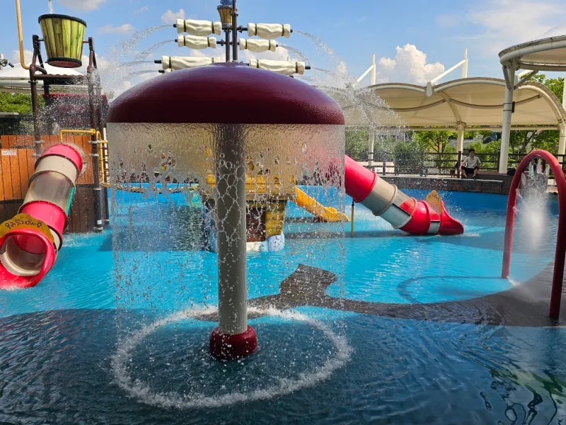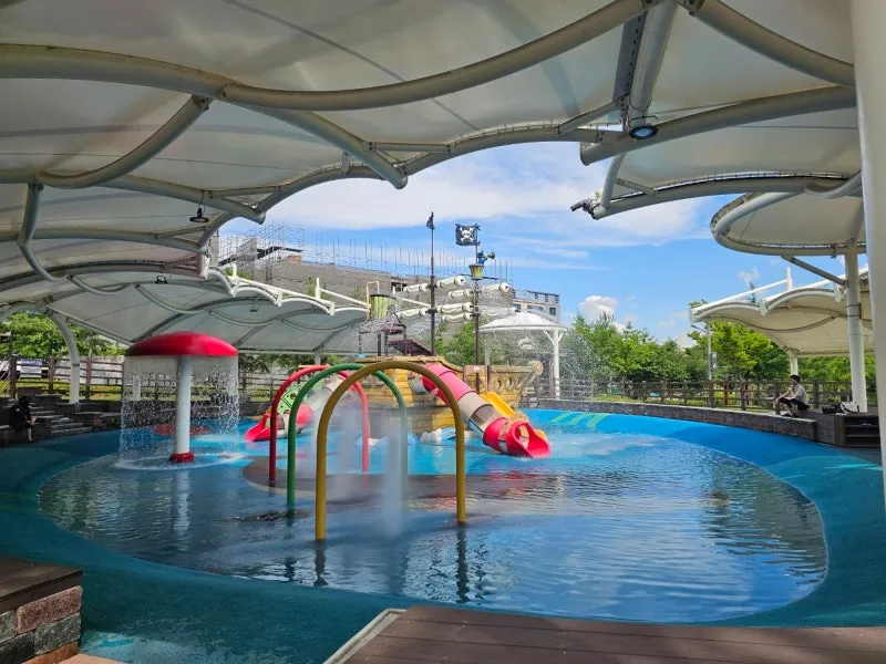 쿨링형 물놀이 시설로 시원한 물이 나오고 있어서 이곳에 서서 물을 맞으며 더위를 식히는 아이들도 볼 수 있었어요.