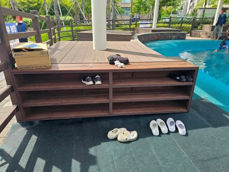 가흥 안뜰 공원 물놀이장은 맨발로만 이용이 가능하니 입구에 신발을 벗어 두고 가면 되고, 맨발이라 미끄러울 수 있으니 물놀이장 내에서 뛰거나 장난을 치면 안 됩니다.⛔