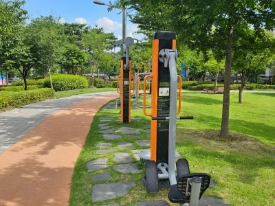 물놀이장에서 시원하게 노는 아이들을 보니 멀리 가지 않아도 도심 속에서 물놀이를 할 수 있어서 좋은 가흥 안뜰 공원 물놀이장입니다. 공원에는 운동을 할 수 있는 다리 펴기, 양팔 줄다리기, 하늘걷기, 옆 마도 타기, 큰 활차 운동 등의 운동기구도 있어서 공원을 걸은 후 근력운동도 할 수 있답니다.