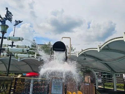 유명한 물놀이장에 와 있는 것 같은 이곳은 시원한 물을 내려주는 양동이 시설이 있는데 유명 물놀이장에서 봤던 그 양동이가 이곳에도 설치되어 있어서 보는 것만으로도 시원합니다.