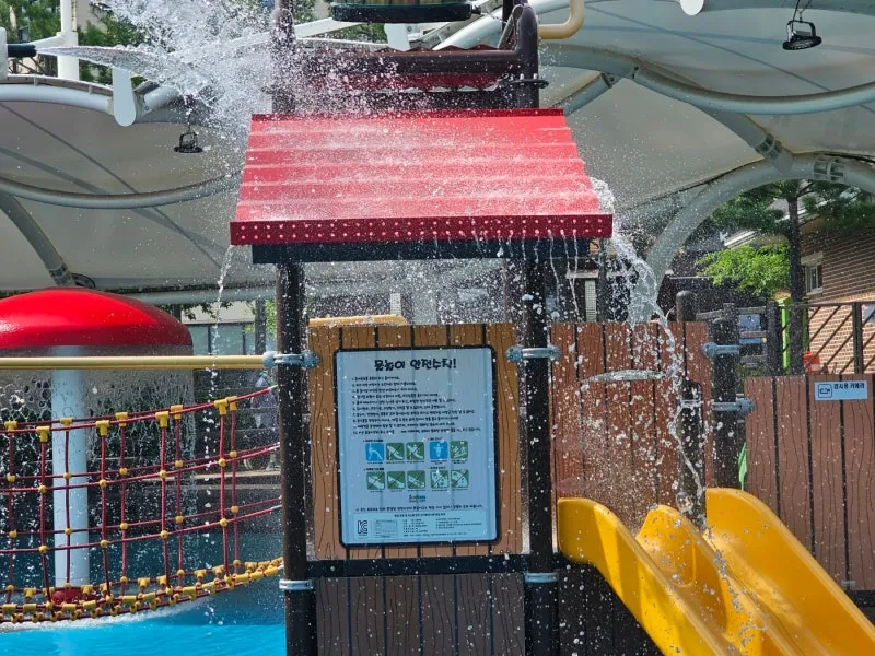 물놀이장에는 안전 수칙이 있으니 물놀이 전에 아이들에게 알려주시면 좋을 것 같습니다. 🌈💧