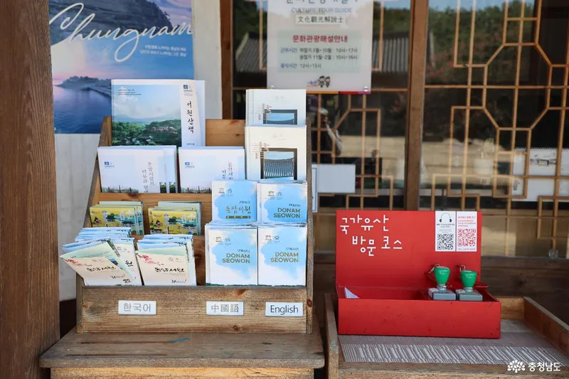 돈암서원 정문 옆에 있는 문화관광 해설소에는 한국어, 영어, 중국어로 된 안내 책자가 있으며, 국가 유산방문코스 스탬프도 마련이 되어 있었습니다. 돈암서원에서는 2025년 만인소, 서원동자, 예미락 등 다양한 프로그램을 운영하고 있어 외국인과 아이들이 유생이나 선비가 되어 하루 일과를 체험할 수 있습니다.