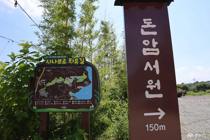 돈암서원 주차장에서 조금 올라가다 보면 돈암서원 이정표와 함께 ‘시나브로 치유길’ 에 대한 설명이 있습니다. 시나브로 치유길은 논산 한옥마을에서 출발해 휴정서원에서 마무리하는 계백의 혼이 살아 숨 쉬는 솔바람 길입니다.