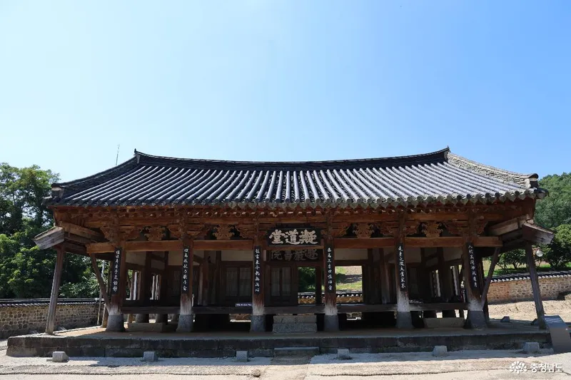 돈암서원 ‘응도당’은 유생들이 장수강학 하던 강당 건물로 예를 실천하는 건축 제도의 모델로 제시된 건축 양식에 따라 지어졌으며 돈암서원의 건물 배치와 규모는 사계 김장생이 ‘의례’와 ‘주자대전’을 고증하여 강경 죽림서원의 법도를 따라 지었다고 합니다.