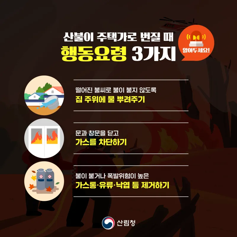 ✅산불이 주택가로 번질 때 행동요령 3가지