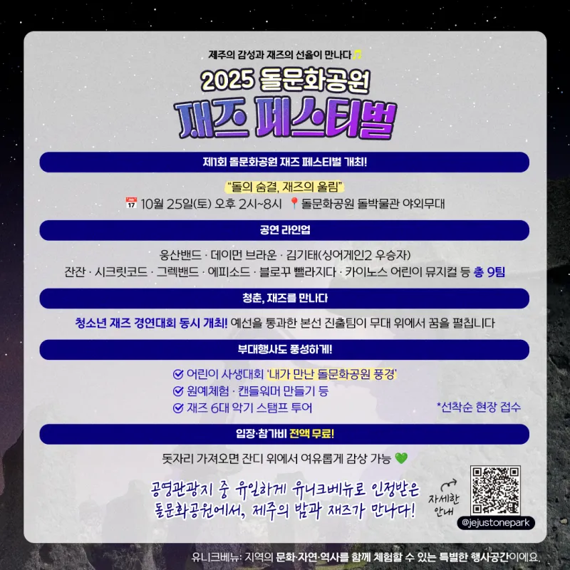 🎷 제1회 제주돌문화공원 ‘제1회 재즈 페스티벌’재즈 페스티벌' 개최!