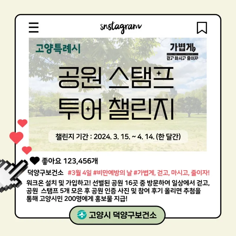 비만예방의 날 기념 <고양특례시 공원 스탬프 투어 챌린지> 참여하고 선물 받아요!