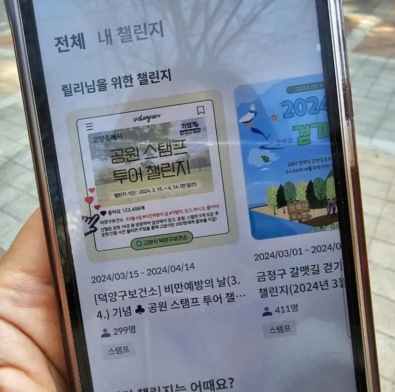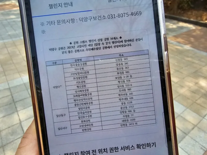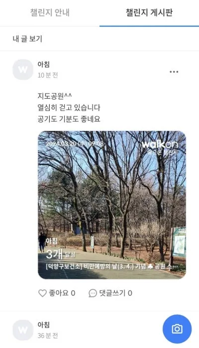 이후 챌린지 게시판에 공원 방문 인증사진과