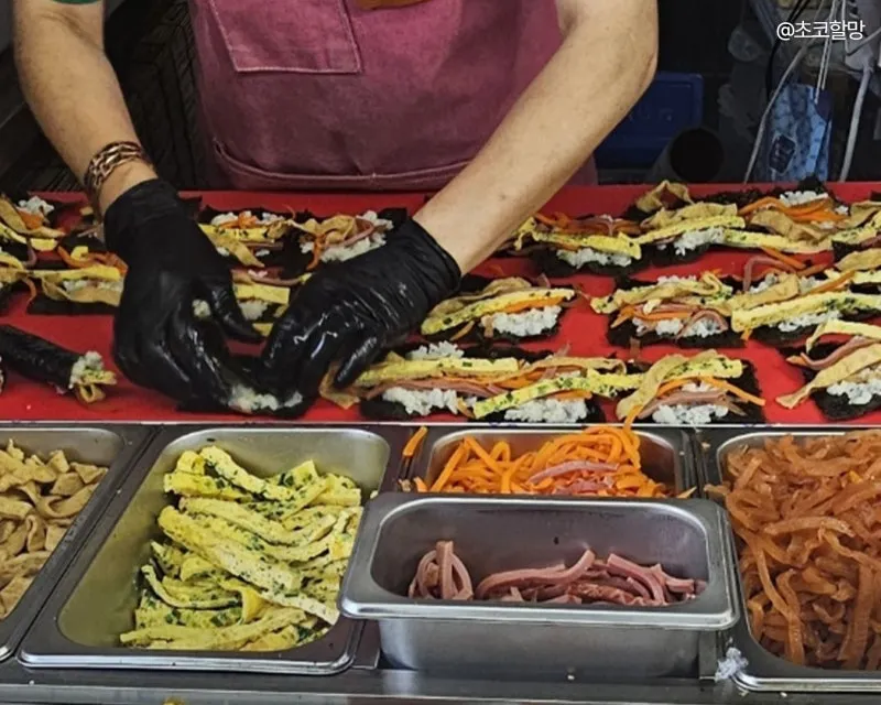시장 한쪽에는 꼬마김밥, 어묵, 토스트 등