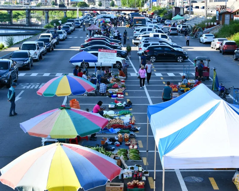 직접 재배한 농산물을 들고나와 판매하는 시장이라