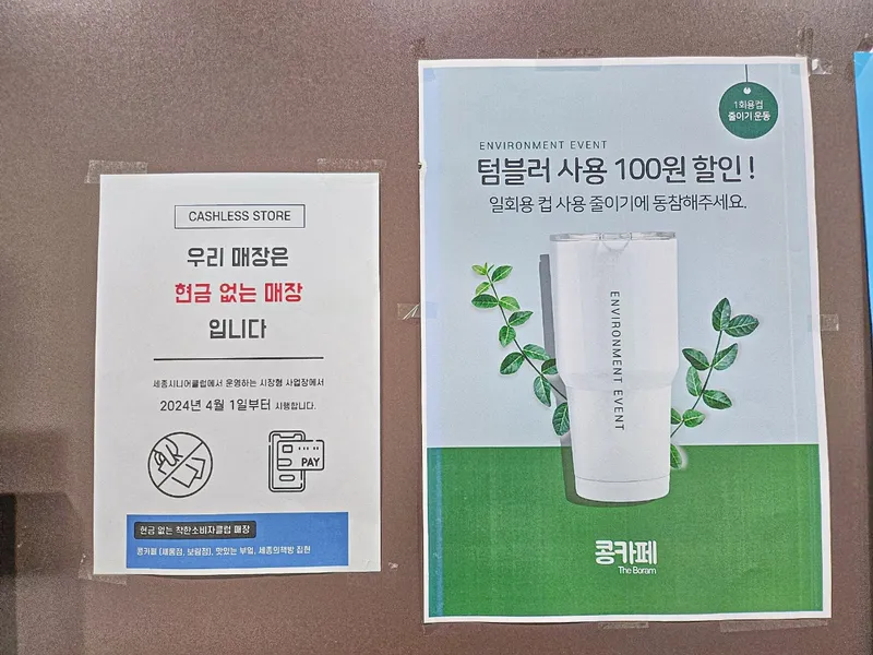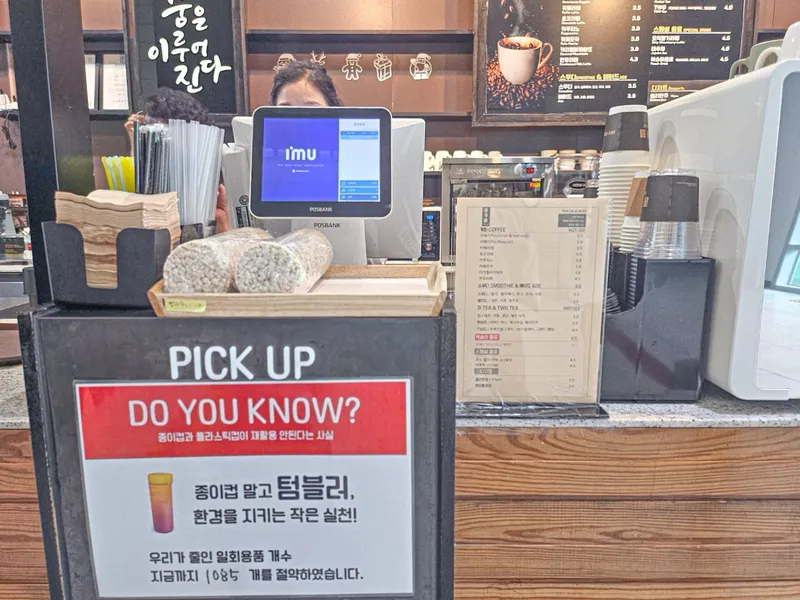 텀블러 사용 시 100원 할인 받을 수 있으니