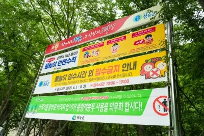 현수막으로 걸어두었으며, 물놀이 역시