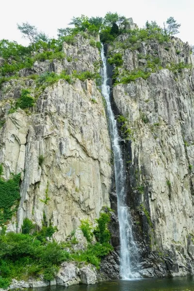 화산암 지형과 수직 낙수형 폭포가 인상적인 풍경입니다.