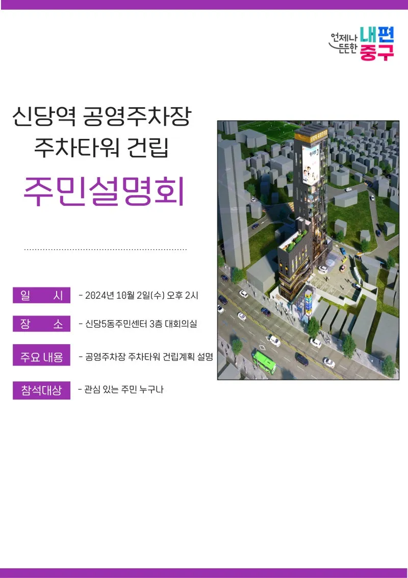 신당역 공영주차장 주차타워 건립 "주민설명회" 안내
