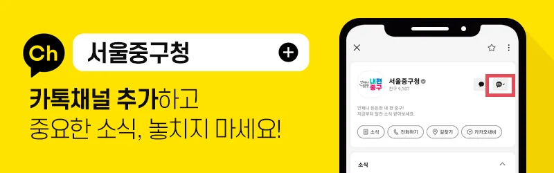 서울 중구청 카톡 채널/중구청 홈페이지로 이동합니다