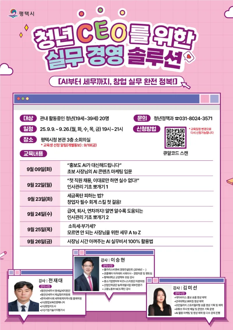 #평택시 #평택청년 #청년CEO #창업교육 #실무경영 #AI마케팅 #인사관리 #세무회계 #창업성공 #평택시청 #청년정책 #청년지원