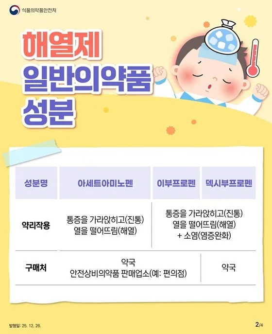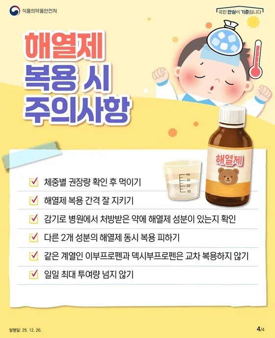 - 다른 2개 성분의 해열제 동시 복용 피하기