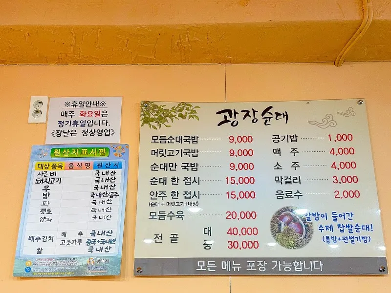 으뜸공주맛집 광장순대의 메뉴는 위와 같습니다.