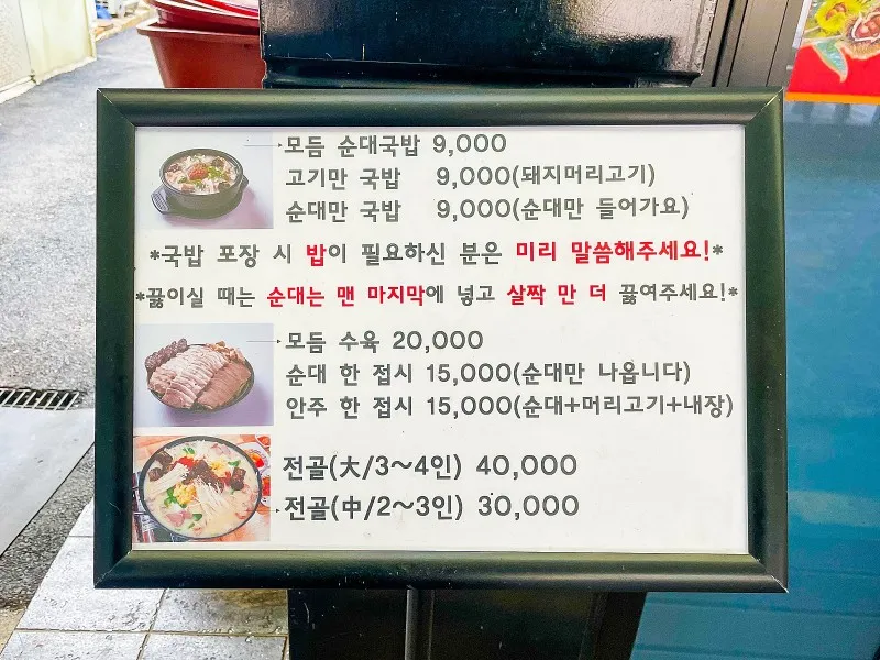 순대를 좋아하지 않으시는 분들은 머릿고기국밥을 선택하시는걸 추천드립니다.