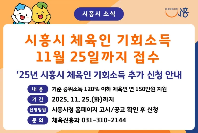 < 시흥시 체육인 기회소득 추가 접수 안내 >
