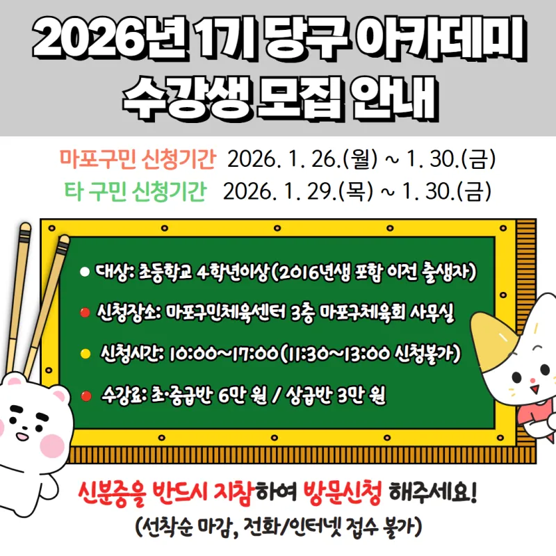 2026년을 시작하는🎱당구 아카데미✨ 수강생 모집 안내😆