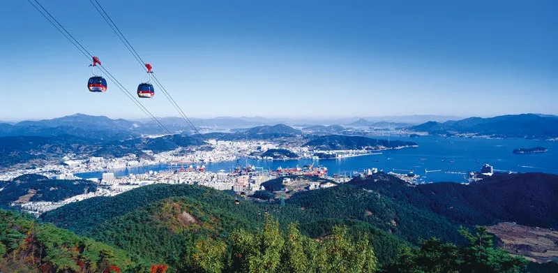 노자산 숲길과 다도해 바다를 360도로 감상할 수 있는 케이블카예요.