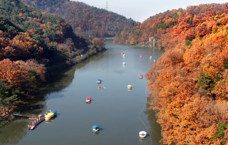 저수지와 협곡이 어우러진 풍경이 장관을 이루는 곳이에요.