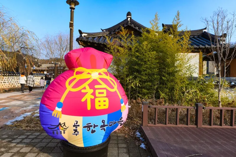 우리가 찾아간 날은 설 명절 전이라 대형 복주머니도 설치되어 있어서 명절분위기가 납니다.