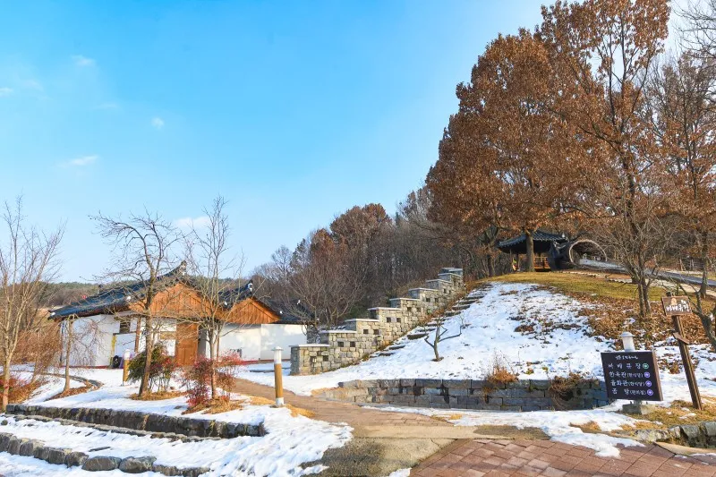 공주에도 실제로 숙박체험을 할 수 있는 한옥이 있으며 봄에는 꽃이 피고 언제가도 좋지만 지난날의 눈이 내린 겨울풍경을 보러 가볼까요?