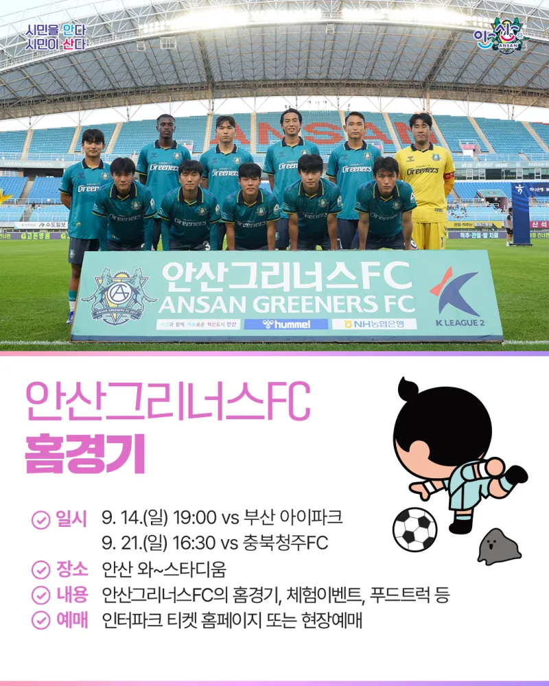 ✅ 내용 : 안산그리너스FC의 홈경기,