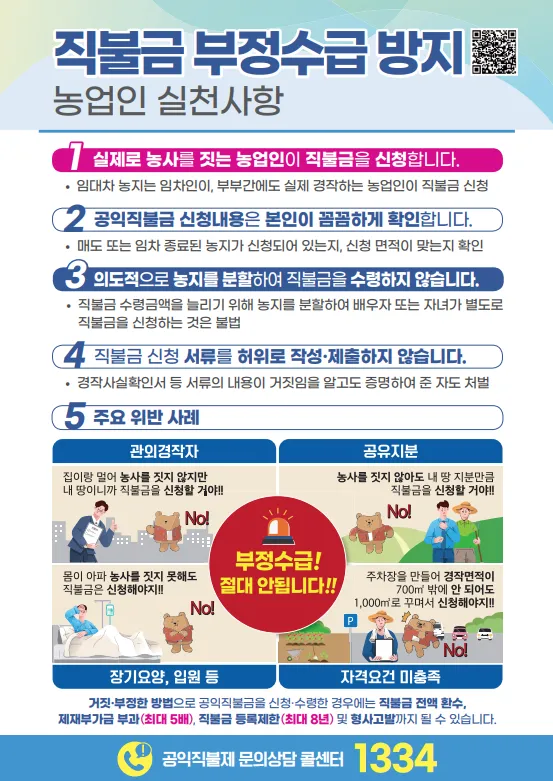 📍 거짓 또는 부정한 방법으로 직불금을 신청·등록하거나 수령하면 안됩니다!