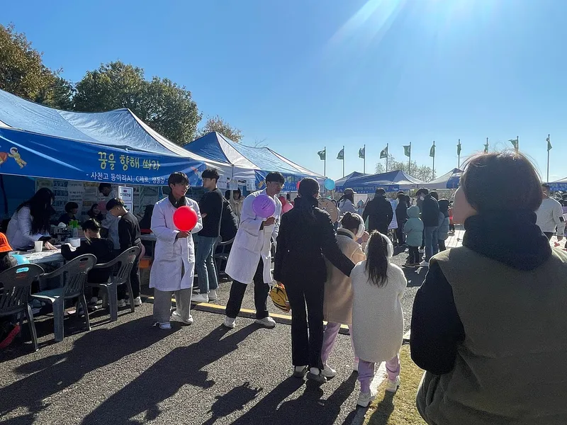 더 안쪽으로 들어가니 중고등학생들이 눈에 띄었어요. 사천고, 용남고, 삼천포여고, 용남중 등 다양한 학교가 참여했어요.