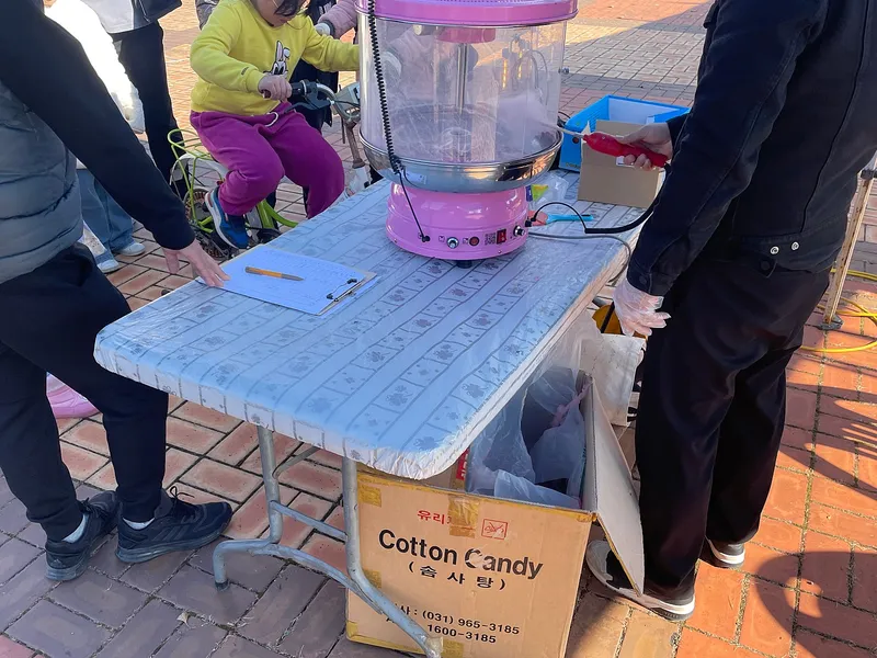 공연장 옆으로 길게 줄을 서 있어서 보니 솜사탕을 만들어 주고 있었어요.