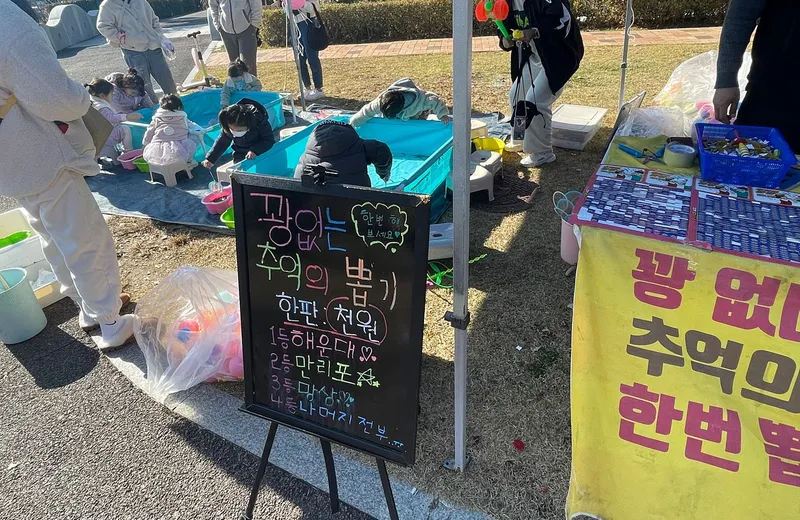이번 행사는 아이들이 가장 신이 났더라고요. 미꾸라지 체험도 하고 꽝 없는 뽑기도 해보고요.