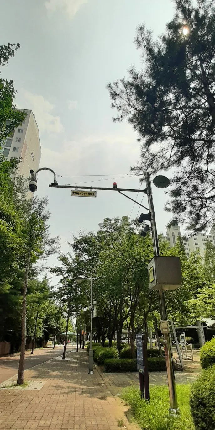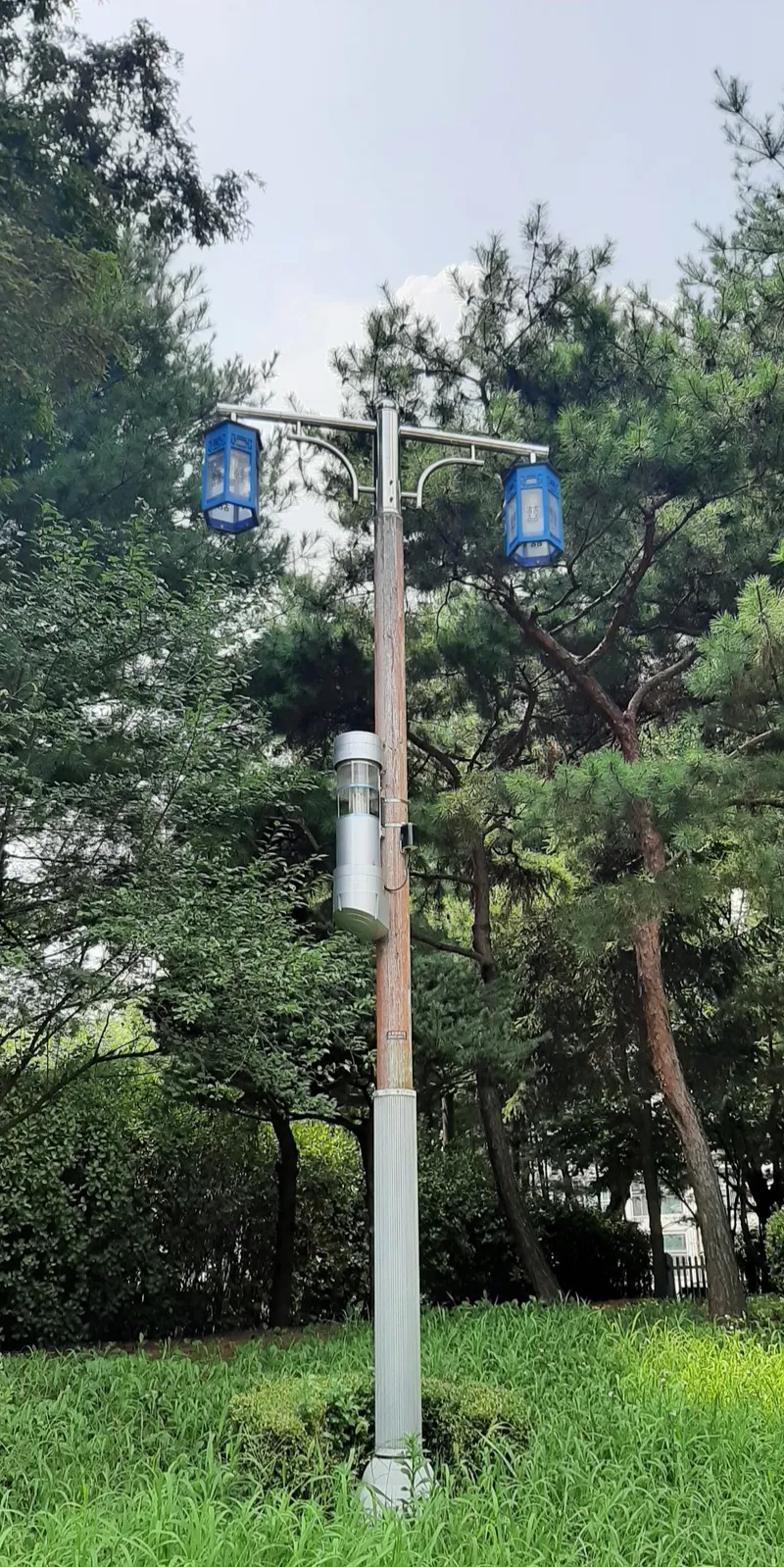 여름날 공원에 꼭 필요한 해충유인 살충기도 볼 수 있고, 방범용 CCTV가 있어 이른 아침, 늦은 저녁에도 공원을 이용하기에 안심이 될 것 같습니다.