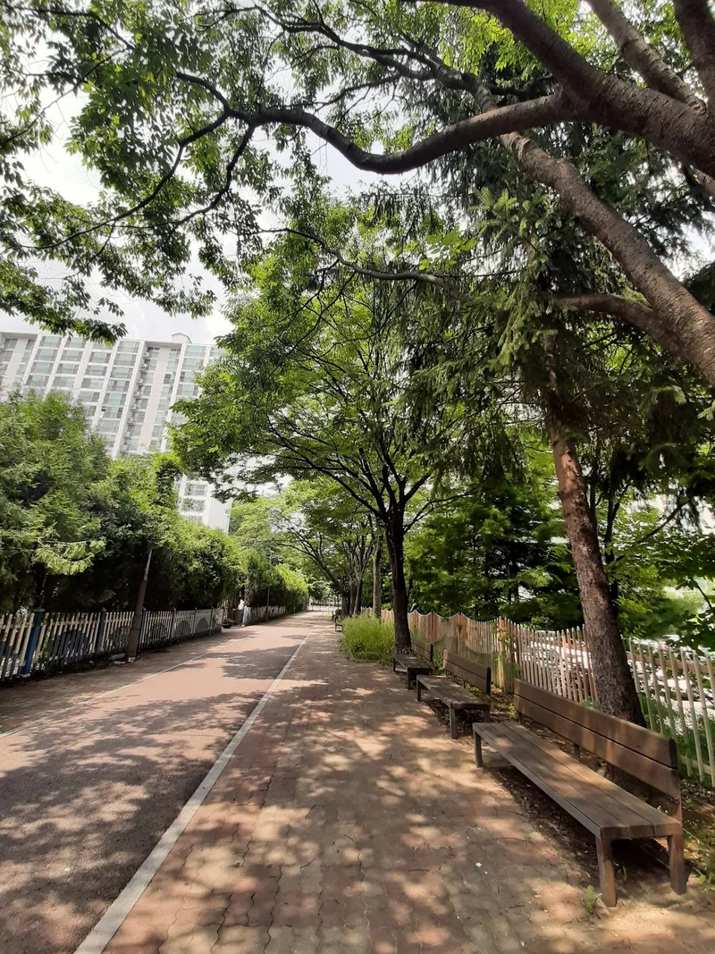 공원의 아파트 사잇길로 가보았습니다. 키가 큰 나무가 우거져 있어 오후 2시 정도에 산책을 하면서도 덥다는 생각이 들지 않았습니다. 나무 그늘 덕분인 것 같습니다.